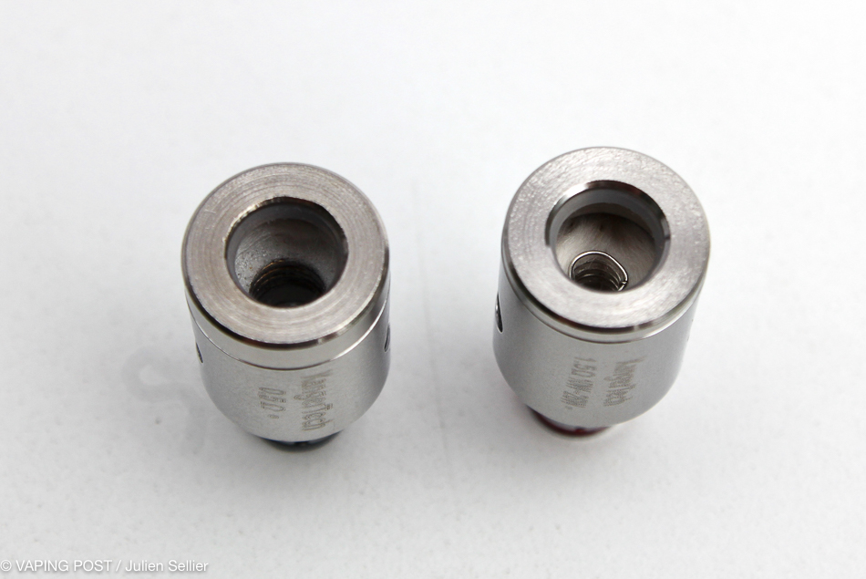 I deplore that Kanger did not provide a reducer for the atomizer chamber, for single coil use. The solution, even if clearly not academic, consists in stuffing cotton on one side of the deck.