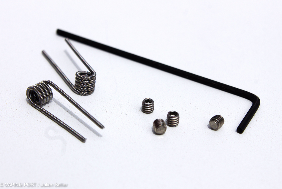 - Cotton, spare screws, Allen key and 2 Clapton coils