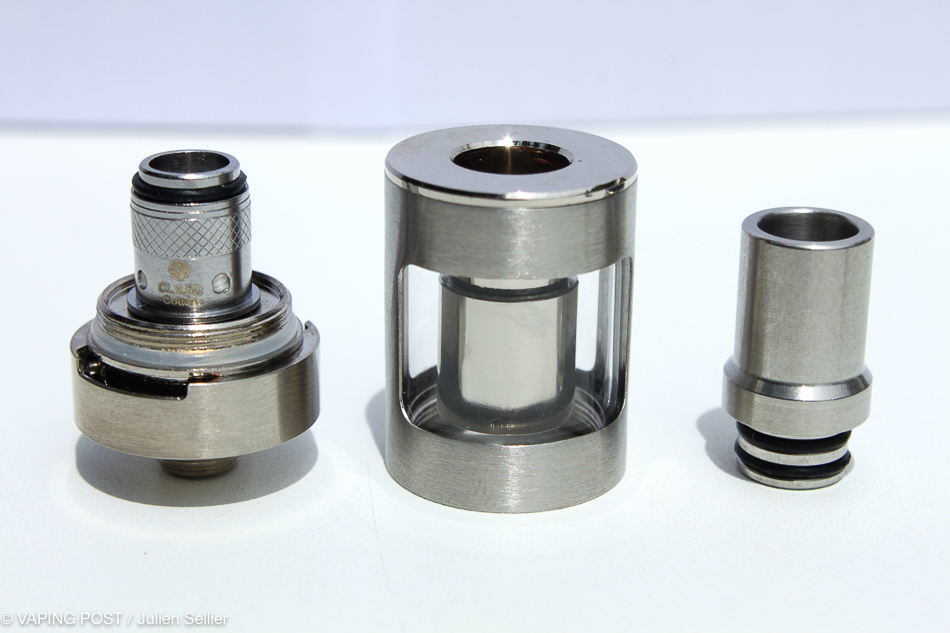 Compatible with the CL series coils, the eGo ONE V2 XL offers 2 coils, one subohm (0.5 Ω) for DL inhalation and one in 1.0 Ω for beginners vaping MTL. When used for subohm vaping, the atomizer may become very hot, especially in chain vaping and despite air openings wide open. A drip-tip in Delrin then becomes unavoidable.