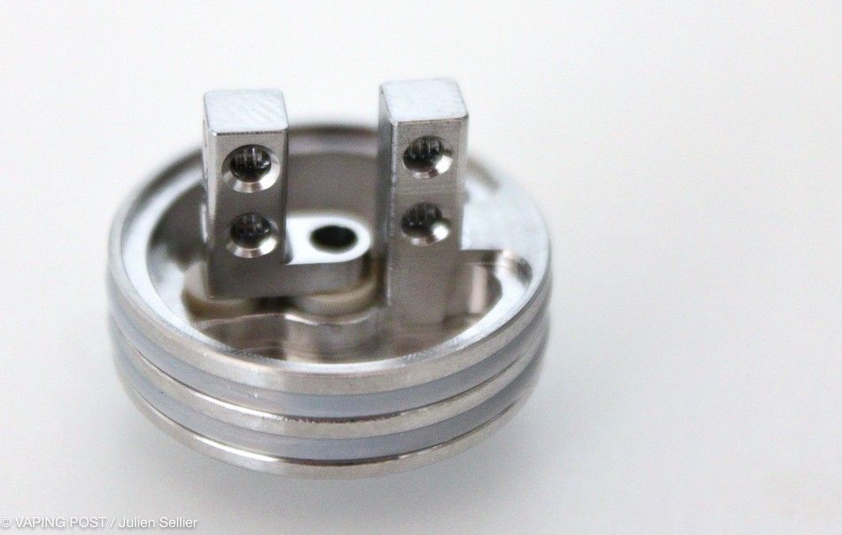 The RDTA Plus better deals with heat than the classical version. Chain-vaping at 80 W heats the top cap but does not burn the lips, a fortiori when a Delrin drip-tip is mounted. By simply keeping the top cap, it is like drinking the juice and it is not only a feeling. I noticed that on an early release, the top cap was curved and provided with a drip-top. It is no longer the case, the actual top cap is flat and the drip-top disappeared, what is regrettable.