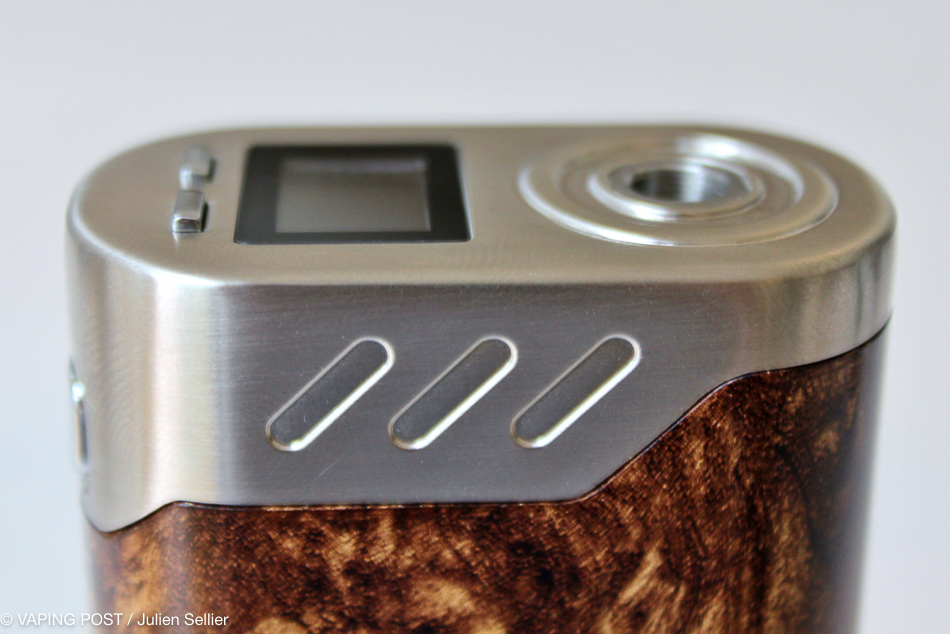 The OLED screen is quite small (0.66 inches) but readable with the most pertinent information. The battery compartment is vented, a micro-USB plug is hidden under the cover and is dedicated to firmware upgrade only (no USB charge).