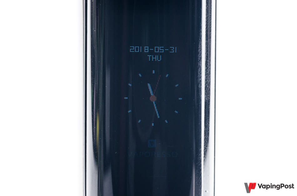 Especially since the box really doesn’t need this to improve the feeling of reactivity. Vaporesso announces 0.002 second latency between the trigger and power stabilization, I measured 0.00255 seconds exactly, which is remarkable. Vapor is immediate, no need to use any artifice at the start to give the illusion of immediate power.