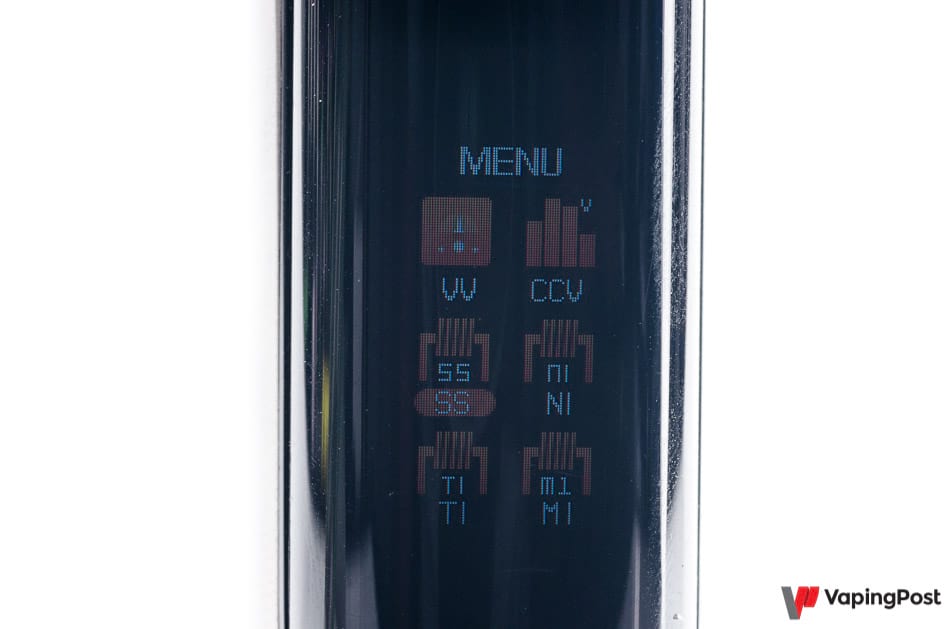 This peak disappears with the soft and hard modes, which modify the steam power by +/- 15% during the first 300 mS of the puff. Do not hesitate to use one or the other with small builds, they will work much better than the normal mode and its excessive heat stroke.