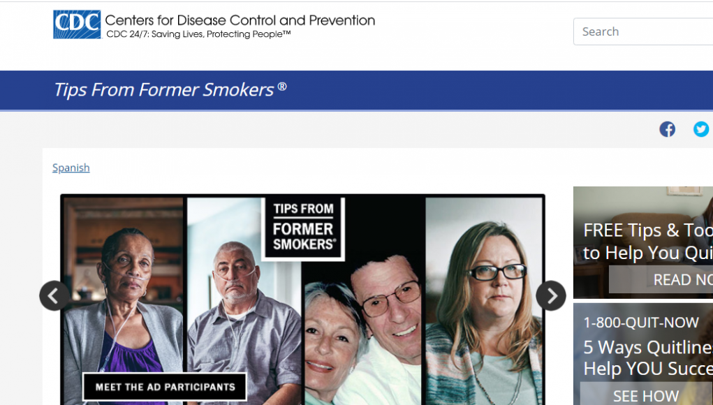 The CDC launched the campaign in 2012. “Tips From Former Smokers — or Tips” aimed to encourage smokers quit by illustrating real-life health consequences of tobacco use and promoting evidence-based resources for quitting. The campaign aired public service announcements featuring former smokers and their families on television, as well as online and in print publications.