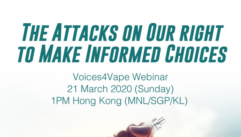The online seminar will be held on the 21st of March 2021, between 1pm and 3pm. Consumers and advocates of safer nicotine products in the Asia-Pacific region, will be using the seminar as a platform to discuss the need for effective public health policy in addressing the smoking epidemic, using the same science and principles used to contain Covid-19.