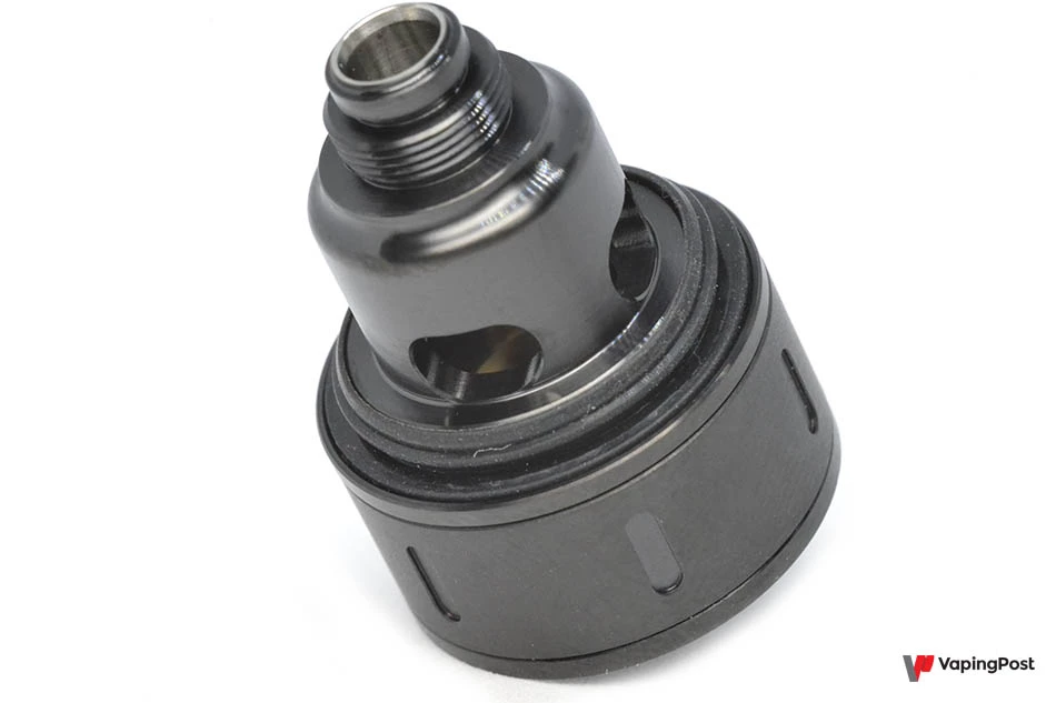 The atomization dome is screwed onto the top. The one that uses the brand’s own AVP coils is fitted as standard. The coil is located under the dome and you just slide it in, up to the stop.