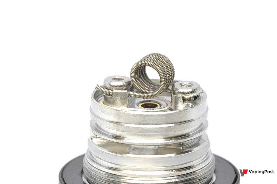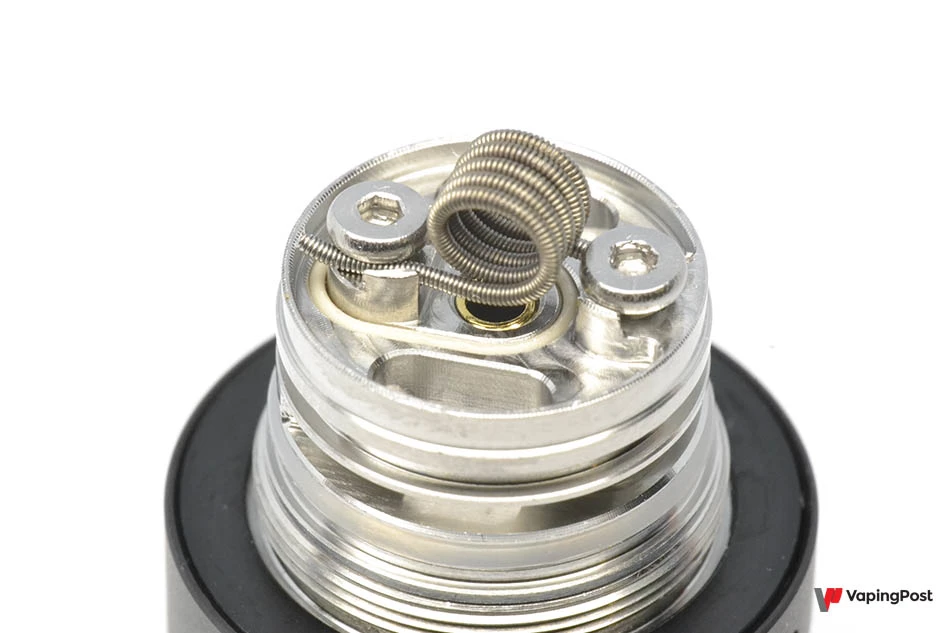 The best thing about the 9th is the fact that you can turn it into a single coil MTL atomizer. All you need to do is take the RBA base that comes in the box, fit a coil onto the two pads and insert the wick into the dedicated side channels. As the plate is small, you have to use the right coils. They need to be small but be able to deliver a quality MTL vape.