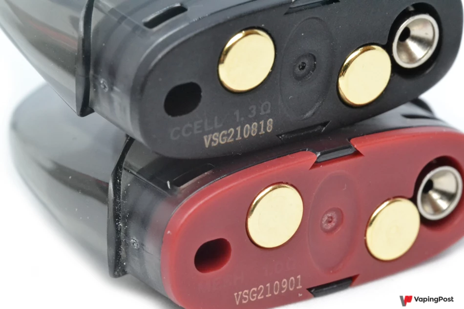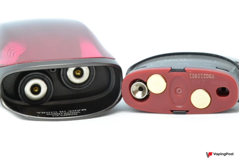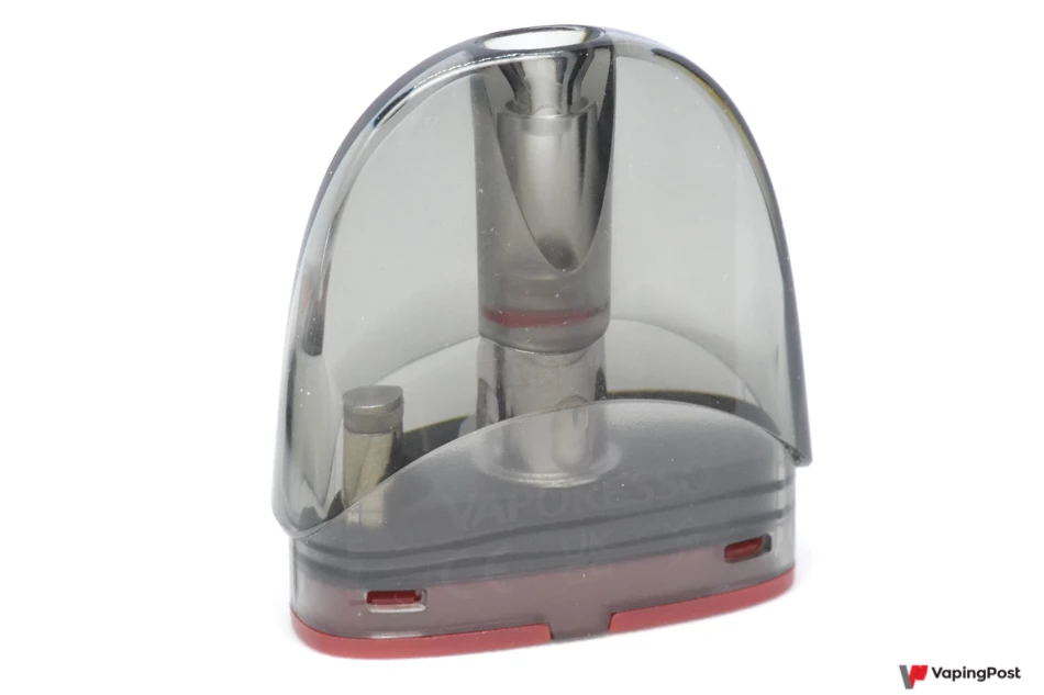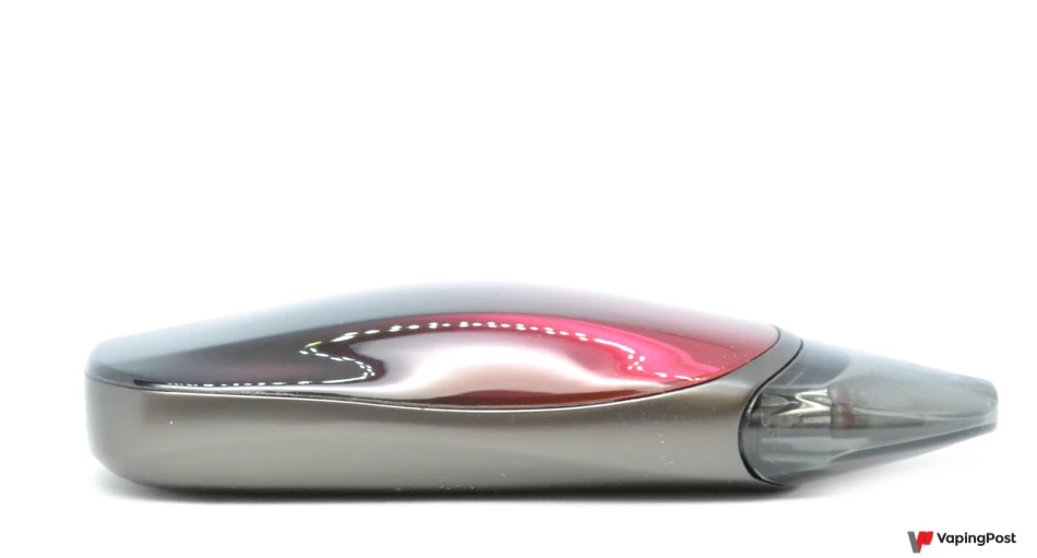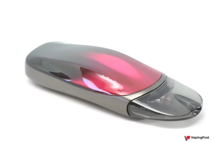 The Zero 2 pod looks quite different from most compact pods these days. Its rounded shape is easy on the eye and makes it look high-end. On our model, the colour goes from a rich black to a subtle purplish red. It looks great, and the metallic sides add an air of solidity. The overall shape of the Zero 2 makes it comfortable to hold too. The pod grips well whether you’re holding the rounded or the flat side.