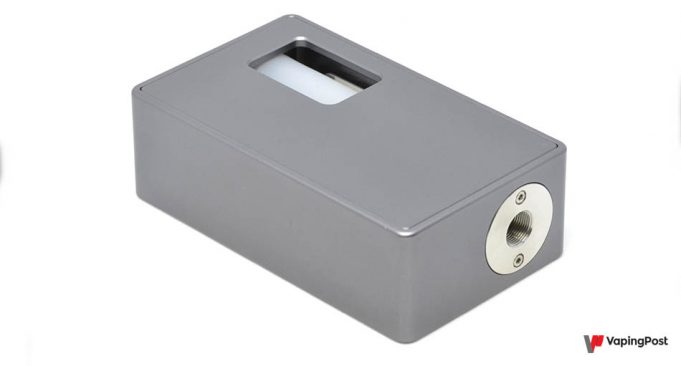 The top of the mod has a 510 pin built into the body, firmly attached by two screws. As expected, the bottom of the pin has an orifice for the liquid to flow up. The deck can only comfortably take atomizers with a maximum diameter of 24mm, with 22mm being ideal. Given the quality of the mod, it’s rather a pity to limit it like this. However, the brand has preferred to stick to dimensions and weight in line with its dripper.