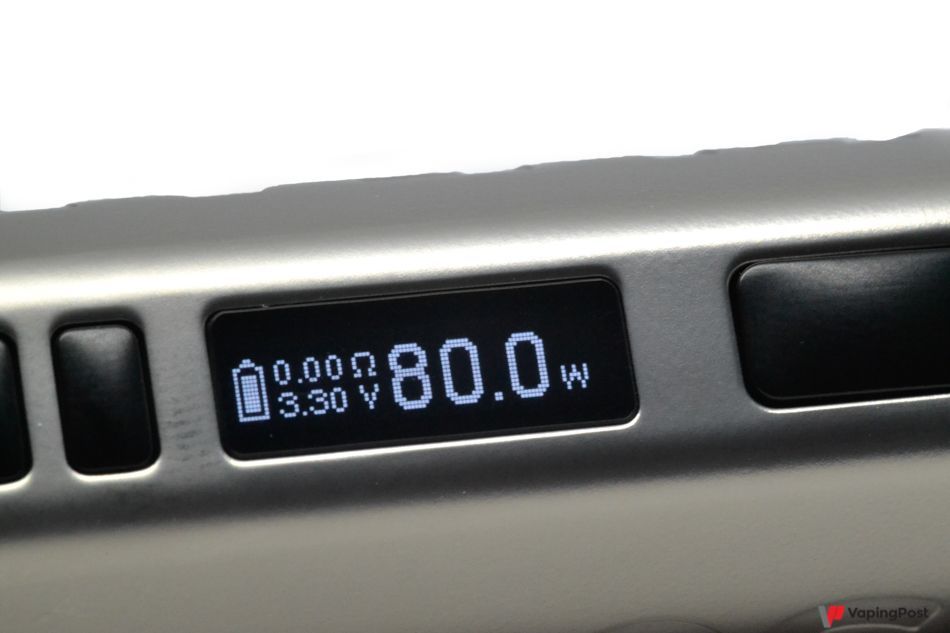 No surprises on the front. There is a large fire button that is in exactly the right place under the thumb or index finger, two settings buttons and a simple screen that does the job. Regular Eleaf users will recognise it at first glance.