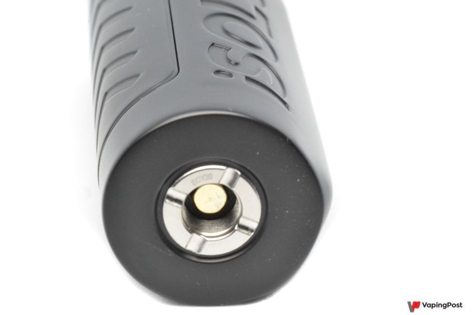 The top of the battery has a 510 connector centred in a large deck that can take atomizers up to 26mm in diameter. That’s exactly the diameter of the GX tank, isn’t that perfect?