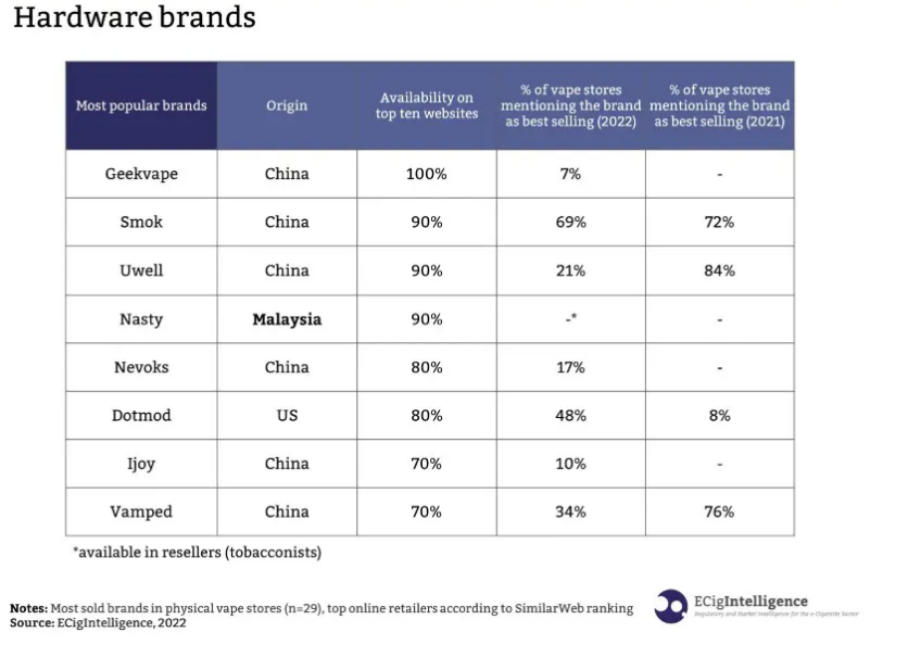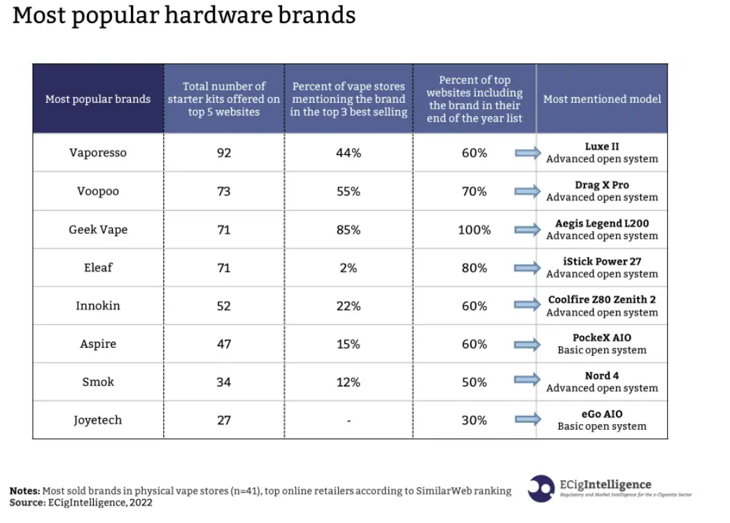 According to EcigIntelligence, a global vape reference website, Geekvape has won “the most popular hardware brand” in France, It topped the “Most Viewed Brands in Vape Shops” category with an 85 percent score.