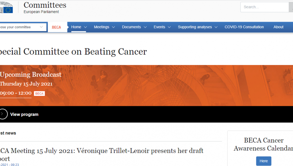 The European Parliament’s Special Committee on Beating Cancer (BECA) was set up in September 2020 and is comprised of 63 MEPs, 33 full members and 30 substitutes. The aim of the committee is to examine actions the EU can take to tackle cancer proposing actions at every key stage of the disease: prevention, diagnosis, treatment, life as a cancer survivor and palliative care.