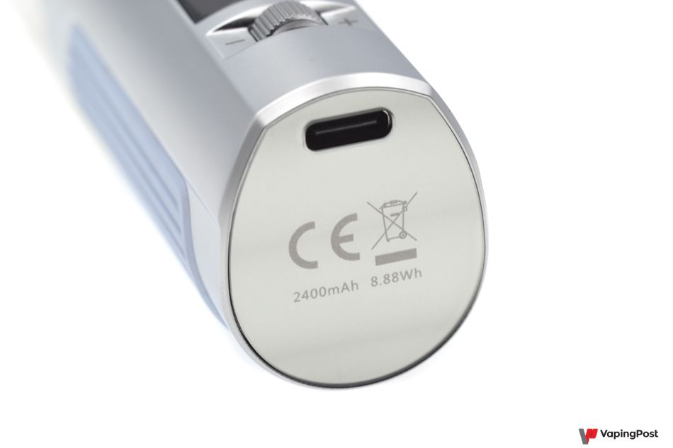 Vaptio’s Procare box is topped with a spring-mounted 510 connector. The kit is designed to work with the clearomizer provided, but you can replace that with other components, like an atomizer that’s up to 25 mm in diameter. If you do, we recommend using the single coil as the box can only deliver up to 50 W.
