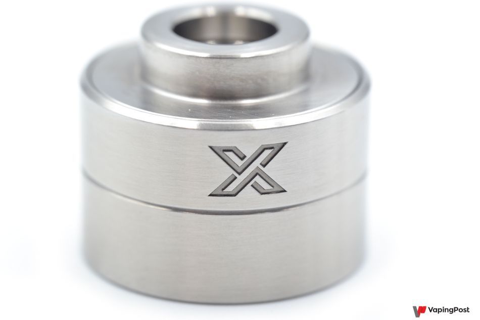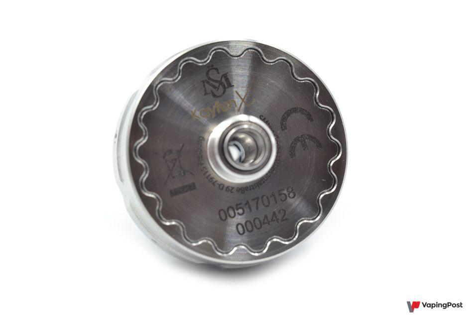 A deep X is finely engraved on the top cap. In addition to contributing to the aesthetics of the Kayfun X, it marks the place to press to slide the metal part aside for filling. Simple and practical!
