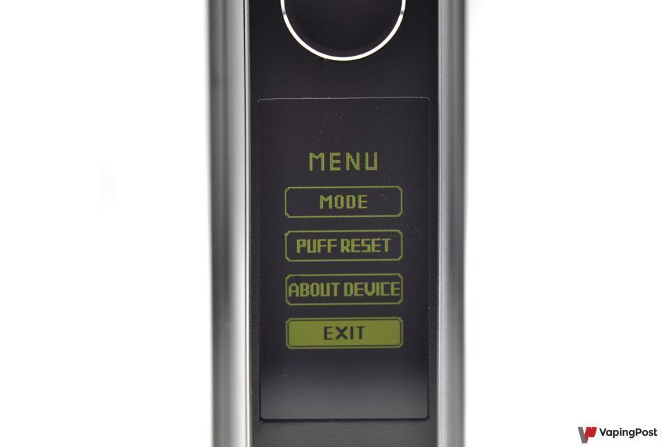 The box is switched on by pressing the fire button five times. Pressing simultaneously on the fire button and the “+” button locks the device without switching it off completely. The screen display is clear and easy to read. It displays all key information at a glance: battery level, vape mode, power level, coil value, tension delivered and even a puff counter. To make it as easy to use as possible, Voopoo has gone for simplicity with its features. There are three modes of use.