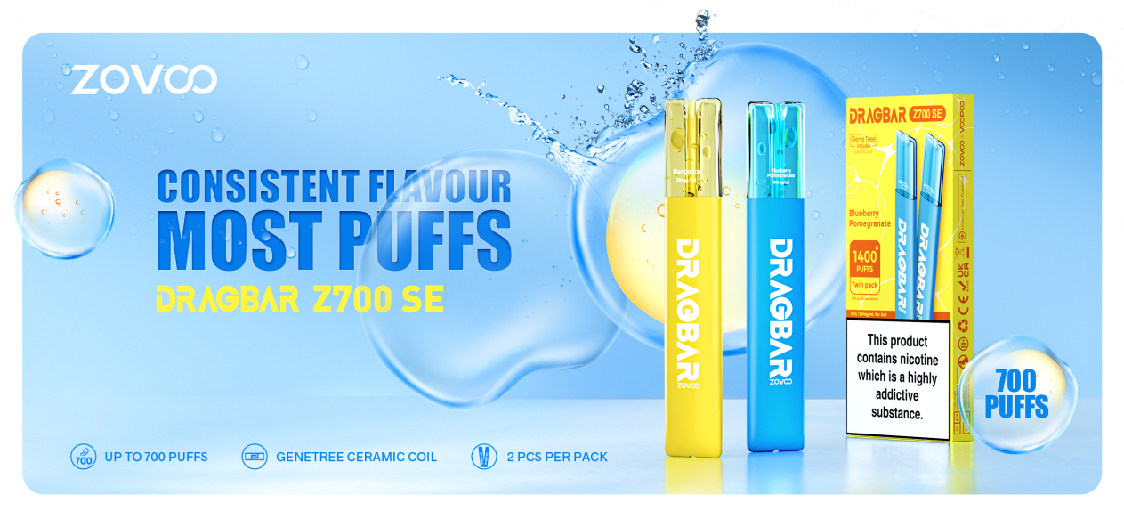 As a result, the DRAGBAR Z700 SE allows for 700 puffs, the most puffs among the TRPR&TPD-Compliant product, for a longer lasting vaping experience.