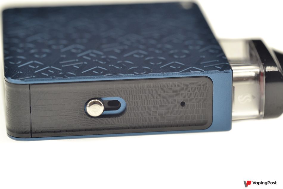 Along one edge, above the USB-C port, there’s a button to adjust the airflow that cools the coil in the cartridge. It does change the draw sensation slightly, but you’ll notice a bigger difference when you change between the cartridges and feel the effect of the other coil.