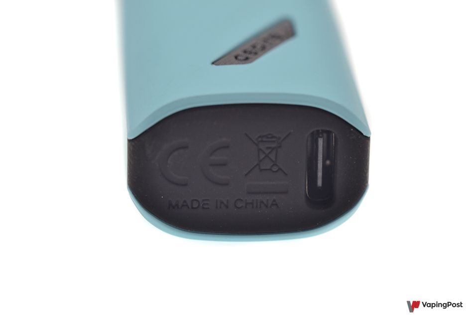 Underneath the Vilter Fun there’s a USB-C port for charging the 400 mAh battery. It takes about 50 minutes for a full charge. The battery life isn’t very long, but in such a small device this would be difficult to deliver. The 1 ohm coil is built into the cartridge and is economical. You won’t need to charge your Vilter Fun too often to get great enjoyment from it.