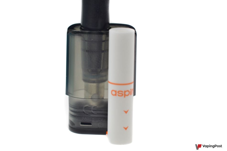Filling it is just as you’d expect. You have to lift the silicone tab to access the filling hole. The hole will only take thin e-liquid bottle tips. A tank capacity of 2 ml is in keeping with the overall size of the pod.