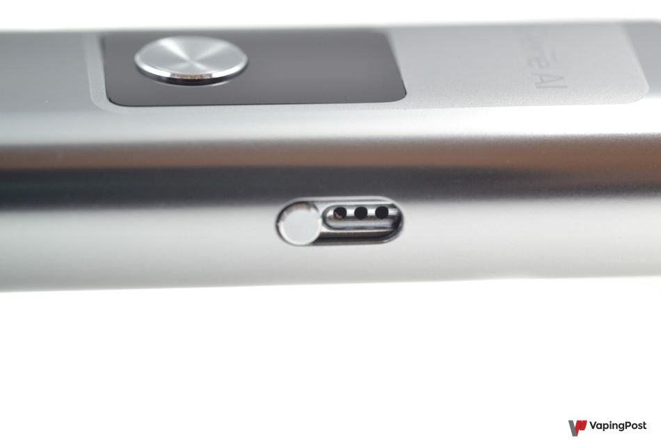 There is a slider along one edge of the Argus G to adjust the airflow. Three small holes regulate the draw and the temperature of the vapour. Leaving the holes open gives a slightly airier vape than closing them slightly. During our tests, we liked this feature as it’s quite precise. It’s a great option that lets you mix things up and switch between different flavoured e-liquids.