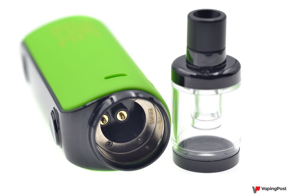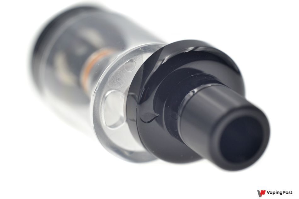 The tank is held onto the upper section of the battery by 4 strong, effective magnets. During our tests, we didn’t notice any sideways play when we used the device as it’s intended.