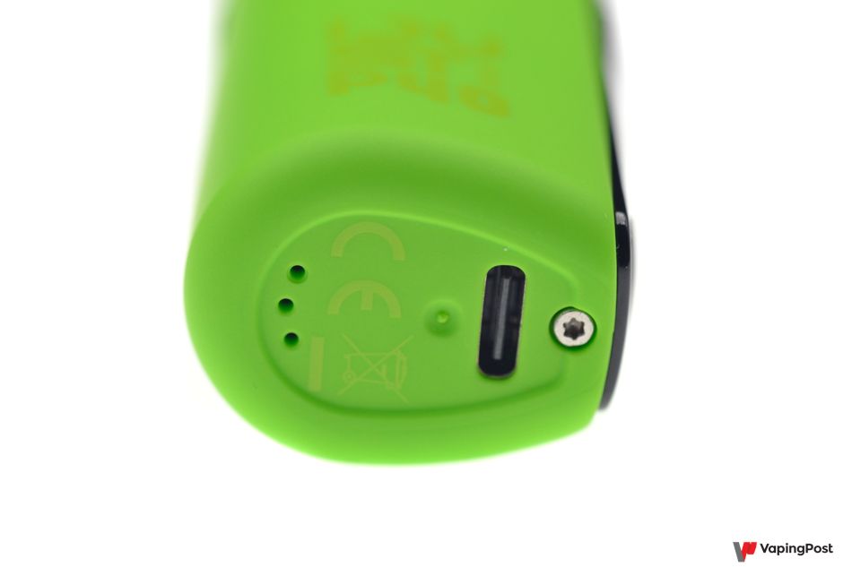 A USB-C port on the bottom of the iJust P40 allows fast charging of the built-in 1500 mAh battery. The battery life isn’t the best in its class, but the coils in the box are pretty economical. The size and weight are in keeping with the battery life. You can also vape while it’s charging.