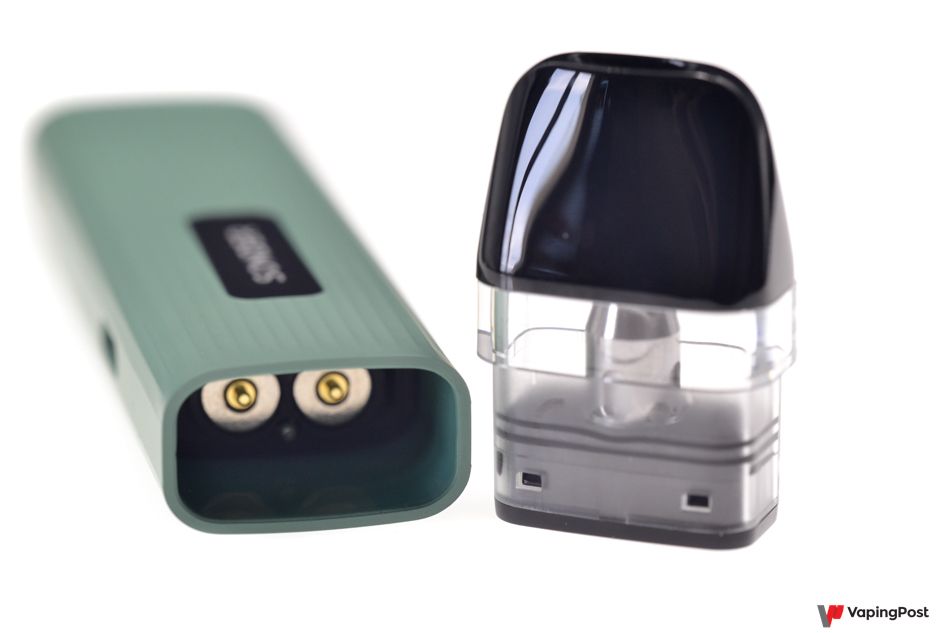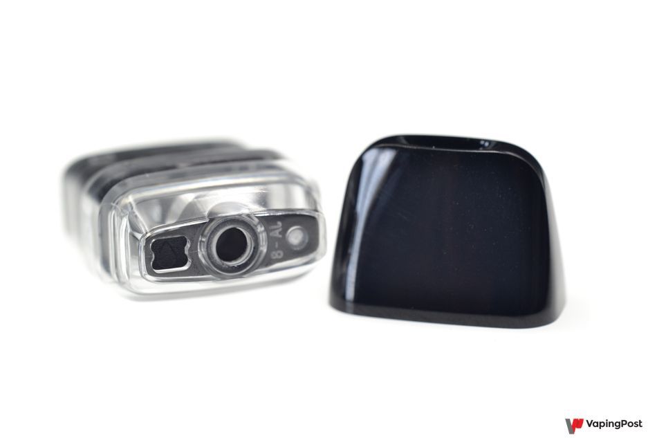 As with most pods, the cartridge fits above the battery. It is held in place by two powerful magnets which prevent any sideways play. The cartridge contains a sealed coil. It’s the only thing we don’t like about the Sonder Q! When the coil wears out, you have to throw away the whole cartridge and buy a new one.