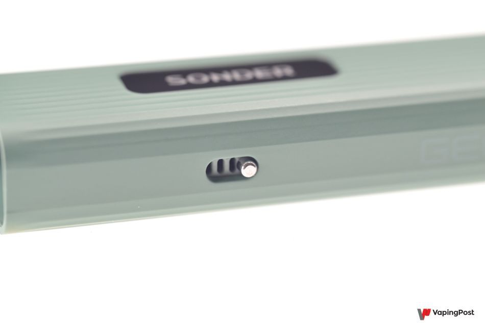On the side opposite the USB-C port, there’s a slider to change the air flow volume for cooling the coil in the cartridge. The slider is tight enough that it shouldn’t move, even while you’re out and about.
