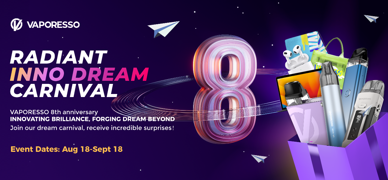 For more information about VAPORESSO’s 8th anniversary celebrations, please visit: https://www.vaporesso.com/.