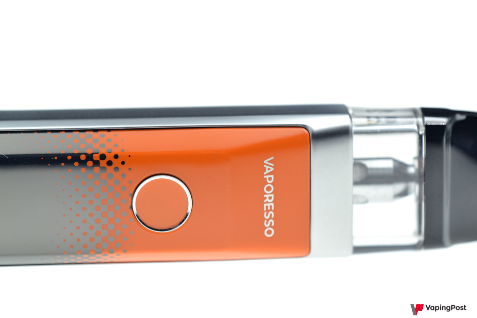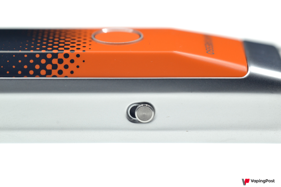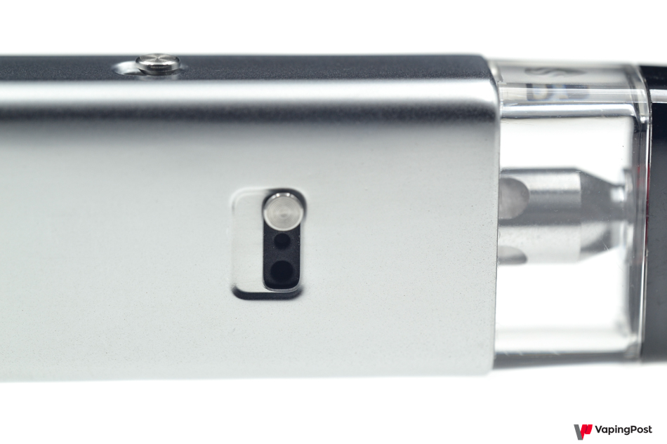 Airflow adjustment is available on the back of the device. It slides to allow the air in to cool the coil in the cartridge. You can switch from a tight draw to a much more dynamic vape, enabling energetic mouth-to-lung inhalation right through to restricted DL. This slide does not move on its own when the Xros Pro is in a pocket or bag.
