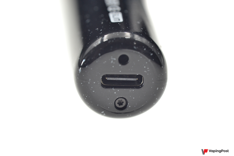 Underneath the Cyber G Slim there’s a USB-C port for fast charging the pod, which has a 1200 mAh battery. It’s a good fit for the size of the vape and the cartridge it comes with, which is fairly economical in its battery use. You can also vape while it’s charging. A small LED just above the USB-C port lights up during charging and during use.