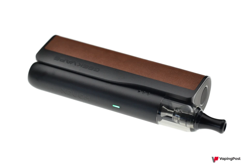 The Wenax M1 Mini pod has a USB-C port to recharge its built-in 400 mAh battery. It’s possible to vape while charging. The main advantage of the kit is the additional battery that hosts the pod. However, for more compact use or in case of a forgotten external battery, the ability to charge the pod separately is a plus.