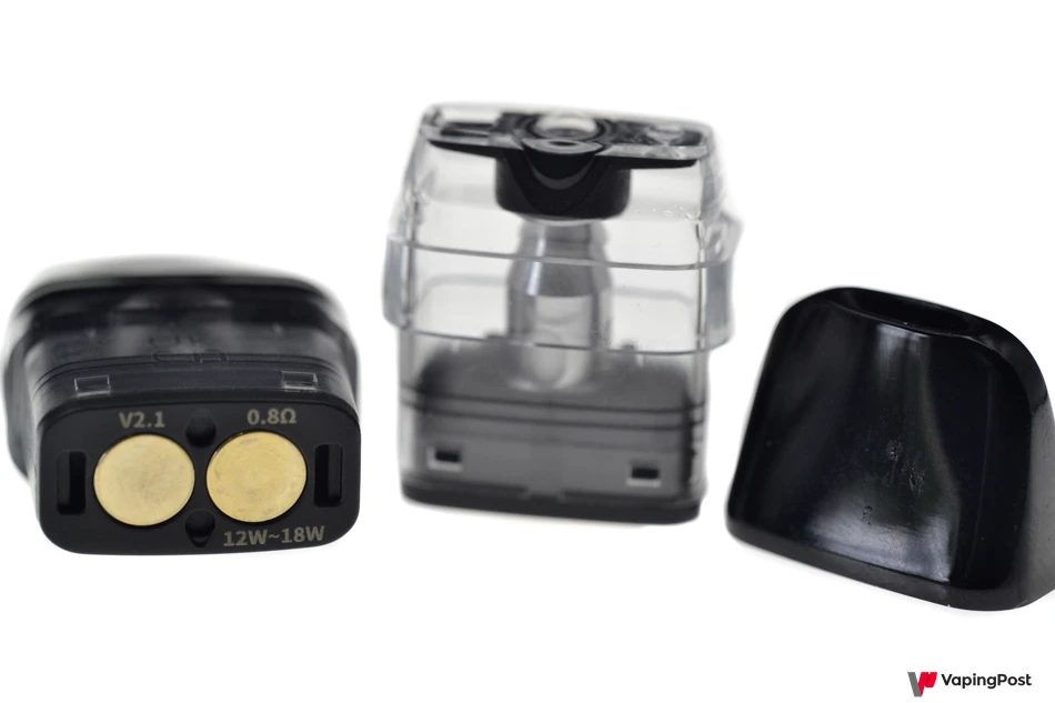 The 0.8-ohm cartridge is better suited for an indirect draw, unlike the 0.6-ohm one. The capacity is 3 ml.