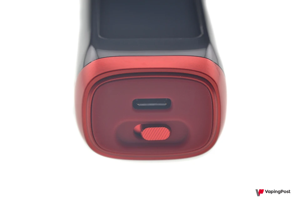 At the bottom of the Digi Max R pod, there is a USB-C connection for recharging its 3000 mAh built-in battery. This battery capacity is significant, outperforming many 18650-sized batteries. With the included coils, mid-day charging is a thing of the past. The battery life is sufficient for daily use. A small slider under the USB-C connection doubles as a locking function. It’s very convenient during transport, saving users from repeatedly turning the device on and off.