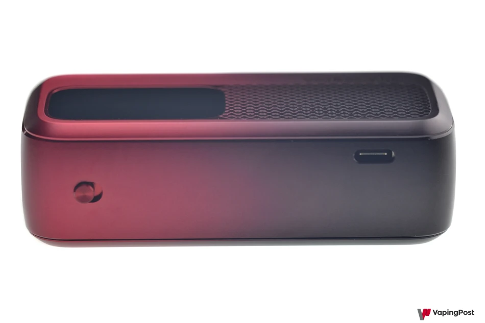On one side of the box, there’s a small slider that allows the user to lock the mod, both in terms of menu access and the firing button. This quick mechanism prevents the need for multiple presses to turn off the box. It is particularly convenient during transport to avoid accidental activation in a bag or pocket. Below this, a USB-C port allows for occasional battery recharging.