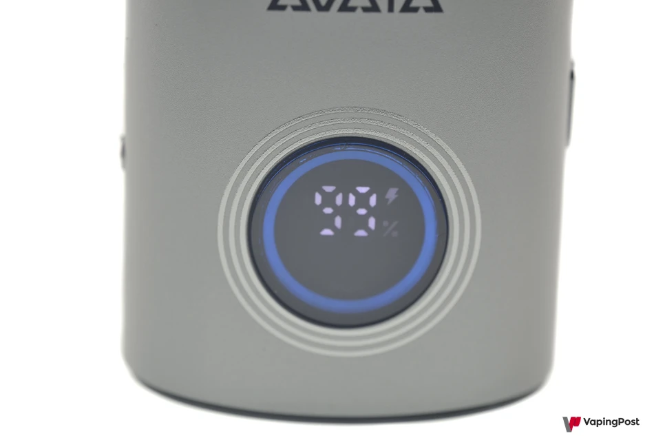 The screen is bright and clearly displays the remaining battery level. The colored ring changes depending on both the battery percentage and the selected mode (3 modes). At a glance, you can check the battery, which has a 1100 mAh capacity. It’s not the largest in this category, but the oversized cartridge leaves less space for the battery.