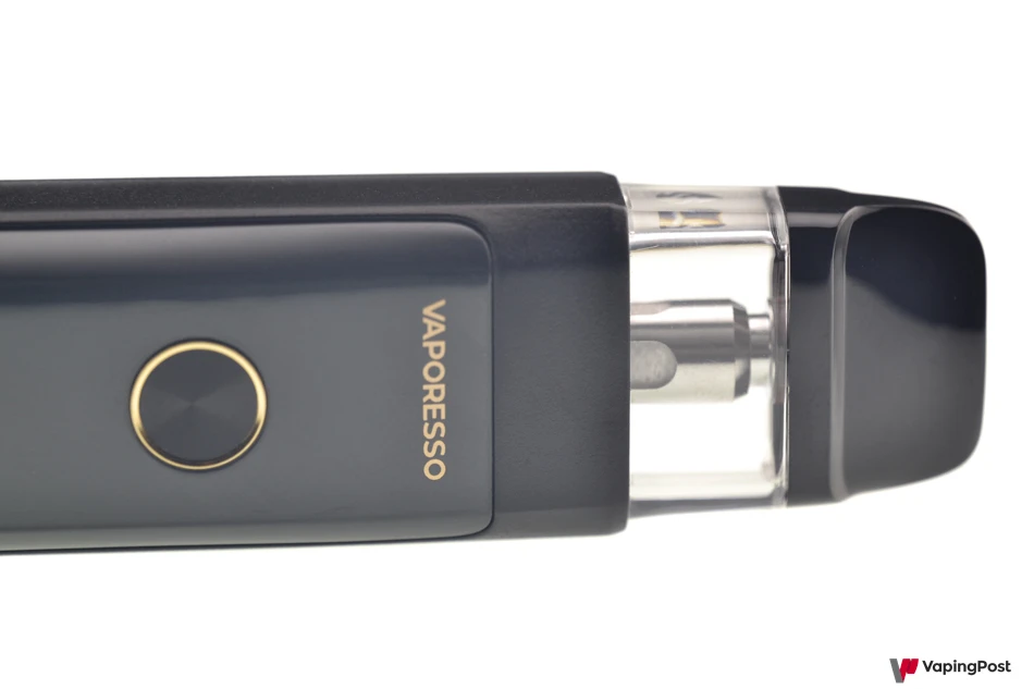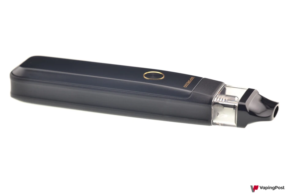 On the opposite side, a fire button activates vapor production, though you can also vape by inhaling directly. The button is used to configure the pod—changing modes, power levels, and screen display. Nothing complicated here, and the pod even allows some visual customization to suit personal tastes.