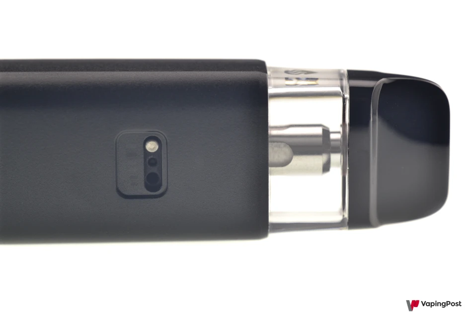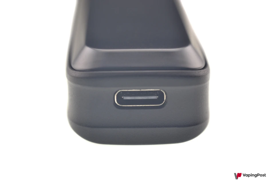 At the bottom of the Xros Pro 2 is a USB-C port for fast charging of the 2000 mAh internal battery. The battery life is excellent for a device of this size, and its power consumption remains modest. You can even vape while it’s charging.