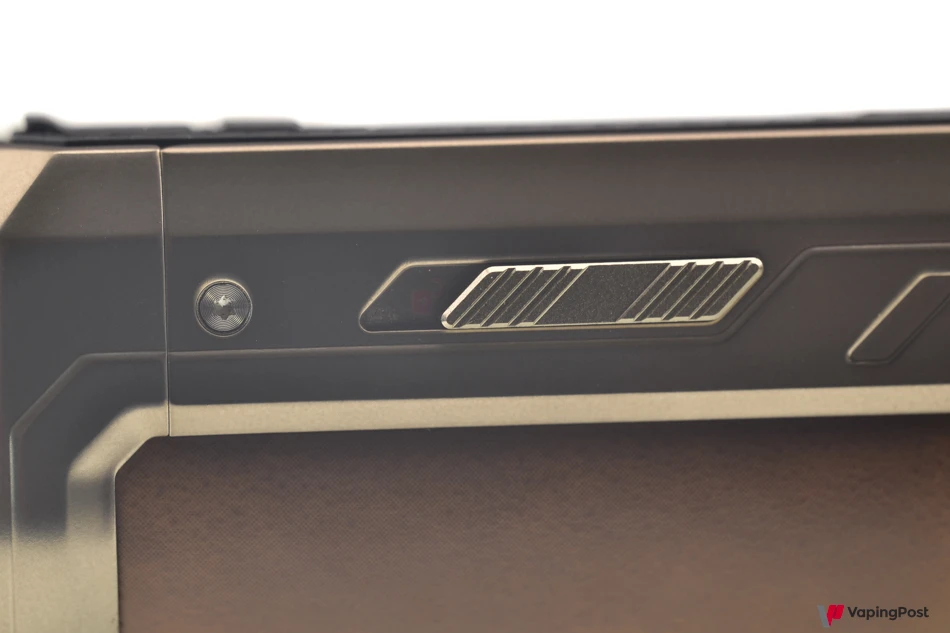 On the side of the mod, a slider acts as a lock. Already used by other brands, this system is simple and effective, avoiding repeated presses on the fire button. Always accessible, the function is genuinely practical.