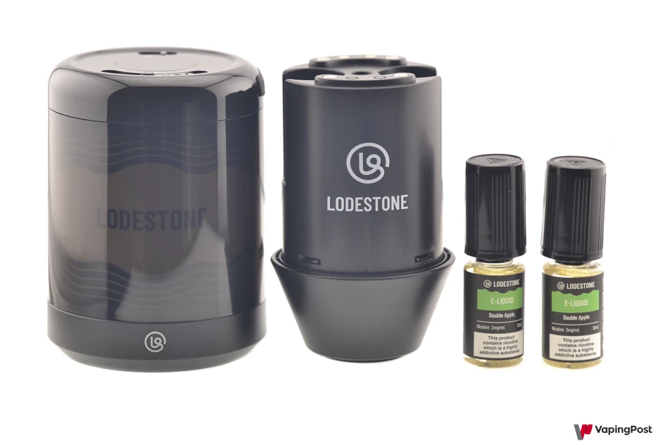 Our sample was supplied with two bottles of “Double Apple” flavored e-liquid, containing 2 mg/ml of nicotine with a 40/60 PG/VG ratio.