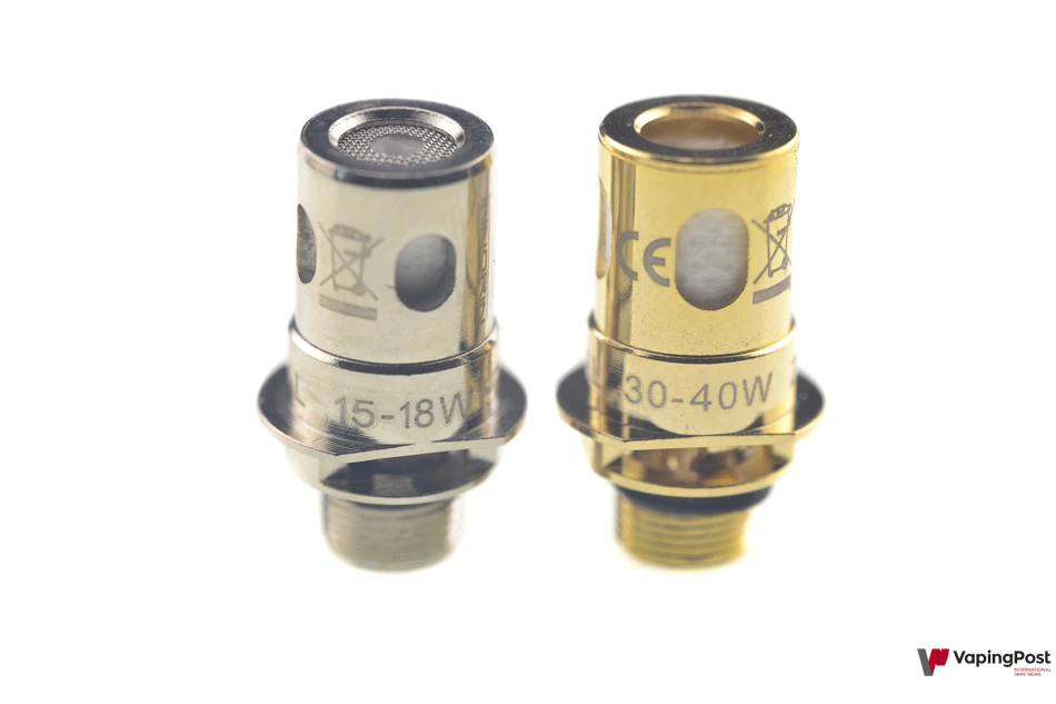Two coils are included in the box. The 0.8 ohm Z Coil is used between 15 and 18 W for MTL vaping. The second coil is the 0.3 ohm Z Coil for vaping at 30 to 40 W.