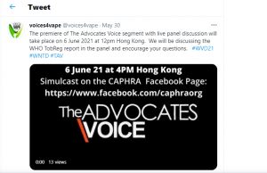 Hosted by Asia Pacific’s coalition of consumer Tobacco Harm Reduction (THR) organisations, The Coalition of Asia Pacific Tobacco Harm Reduction Advocates (CAPHRA), The Advocates...